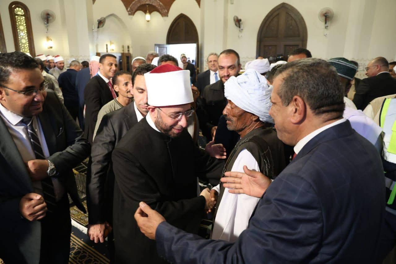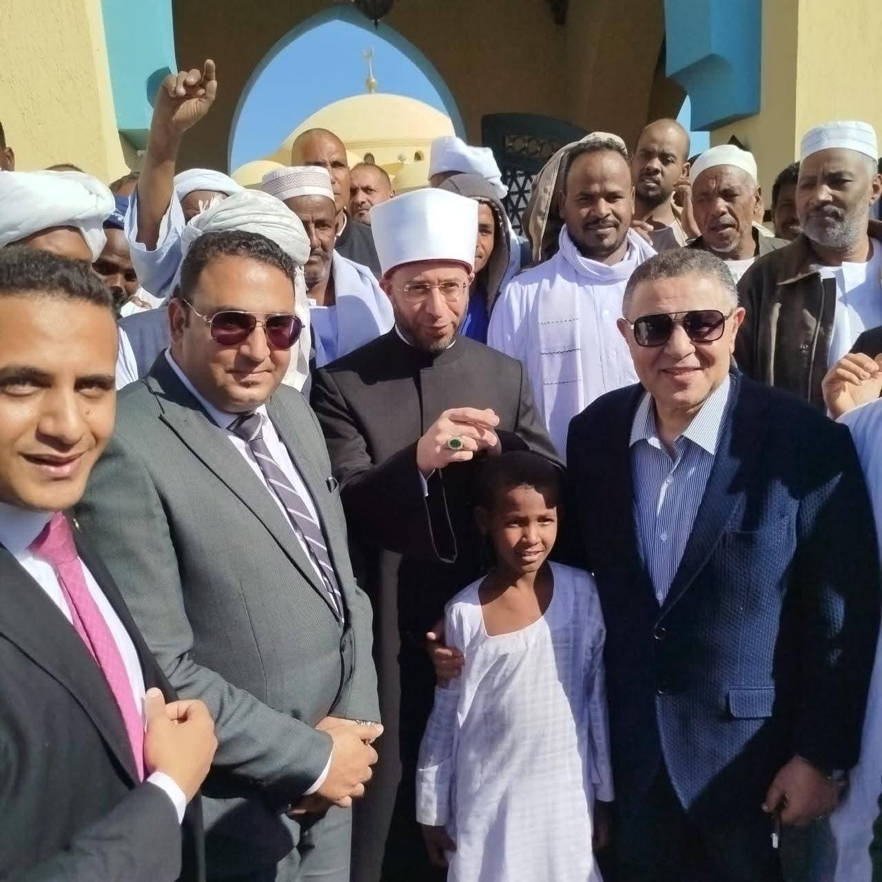 وزير الأوقاف: نحن هنا اليوم لتأكيد عناية الدولة المصرية بكل مواطنيها روحيًا وفكريًا وماديًا برعاية كريمة فخامة الرئيس عبد الفتاح السيسي – رئيس الجمهورية، واحتفالًا بالعيد القومي لمحافظة البحر الأحمر؛ افتتح الأستاذ الدكتور أسامة الأزهري - وزير الأوقاف، يرافقه الدكتور أشرف صبحي - وزير الشباب والرياضة، والسيد محمد جبران - وزير العمل، والدكتور شريف فاروق - وزير التموين والتجارة الداخلية، والأستاذ الدكتور محمد الضويني - وكيل الأزهر الشريف، والأستاذ أحمد المسلماني – رئيس الهيئة الوطنية للإعلام، والأستاذ الدكتور نظير عياد - مفتي الجمهورية، والدكتور أحمد عبد الرحمن – نائبًا عن وزيرة التضامن الاجتماعي، واللواء والسيد وليد عارف - رئيس الهيئة الهندسية للقوات المسلحة، والسيد اللواء أ.ح. أسامة سمير عبد اللطيف - قائد المنطقة الجنوبية العسكرية، اللواء عمرو حنفي - محافظ البحر الأحمر، والدكتور مهندس علاء ناجي أبو العلاء - رئيس الشركة القابضة للصناعات الغذائية، وعدد من القيادات الدعوية والتنفيذية، وممثلي قبائل حلايب وشلاتين وبرنيس وأبو رماد، مسجد "الحميد المجيد" بمدينة حلايب، ومسجد "السميع العليم" بمدينة برنيس جنوب مدينة مرسى علم. بدأ الافتتاح بمسجد "الحميد المجيد" بمدينة حلايب عبر تقنية الاتصال المرئي (فيديو كونفرانس) من مدينة برنيس، أعقبه افتتاح مسجد "السميع العليم" بمدينة برنيس، في أجواء إيمانية عكست اهتمام الدولة بعمارة بيوت الله ماديًا وروحيًا، لا سيما في المناطق والمدن الحدودية. وعقب الافتتاح، أدى الحضور صلاة الجمعة بمسجد "السميع العليم" بمدينة برنيس، وسط مشاركة واسعة من أهالي المنطقة، فقرأ قرآن الجمعة الشيخ حجاج الهنداوي، فيما ألقى الخطبة الشيخ حسام الدين محمود - إمام وخطيب مسجد الميناء الكبير بالغردقة، بعنوان: «قيمة الوقت في حياة الإنسان»، تناول فيها مكانة الوقت في الإسلام، وكونه جوهر الوجود ووعاء العمل والأمانة العظمى، التي أقسم الله تعالى بها في كتابه العزيز تعظيمًا لشأنها، مؤكدًا أن كل لحظة تمضي هي ميدان للعمل الصالح والقرب من الله سبحانه. وأكد وزير الأوقاف أن افتتاح المساجد يأتي في إطار توجيهات فخامة الرئيس عبد الفتاح السيسي – رئيس الجمهورية - بنشر الوعي الديني الرشيد، وترسيخ القيم الدينية والوطنية، وتعزيز دور المسجد في بناء الإنسان وخدمة المجتمع، مشددًا على اهتمام الدولة المصرية بكل أبنائها روحيًا وفكريًا وماديًا. وعقب صلاة الجمعة، شارك الوزراء والقيادات في توزيع عشرة آلاف كرتونة غذائية وكمية ضخمة من السلع والبطاطين وجّه رئيس الجمهورية بإهدائها من مختلف مؤسسات الدولة إلى أهالي المنطقة، دعمًا للأسر الأولى بالرعاية، وتأكيدًا لمبادئ التكافل الاجتماعي، وتخفيفًا للأعباء عن المواطنين.