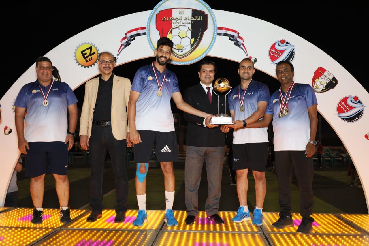 رئيس الإتحاد المصري للميني فوتبول أحمد سمير يتوج نادي عز الدخيلة بكأس مصر موسم 2024-2023.