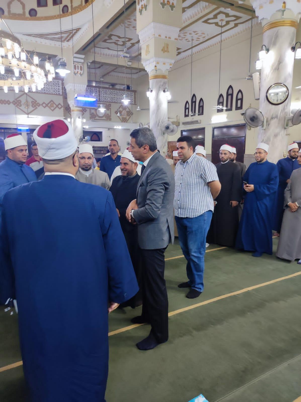 سيادة اللواء أ.ح/ طارق حامد الشاذلي محافظ السويس والدكتور/ عبدالله رمضان نائب المحافظ وبرفقتهم فضيلة الشيخ/ ماجد راضي وكيل وزارة الأوقاف بالسويس.