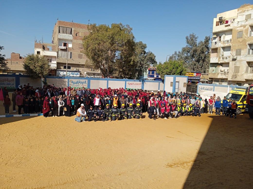 تدريب ميداني نموذجي لسيناريو إخلاء يعزز ثقافة الأمان والسلامة في مدرسة الشهيد النقيب محمد عمرو بالسويس.