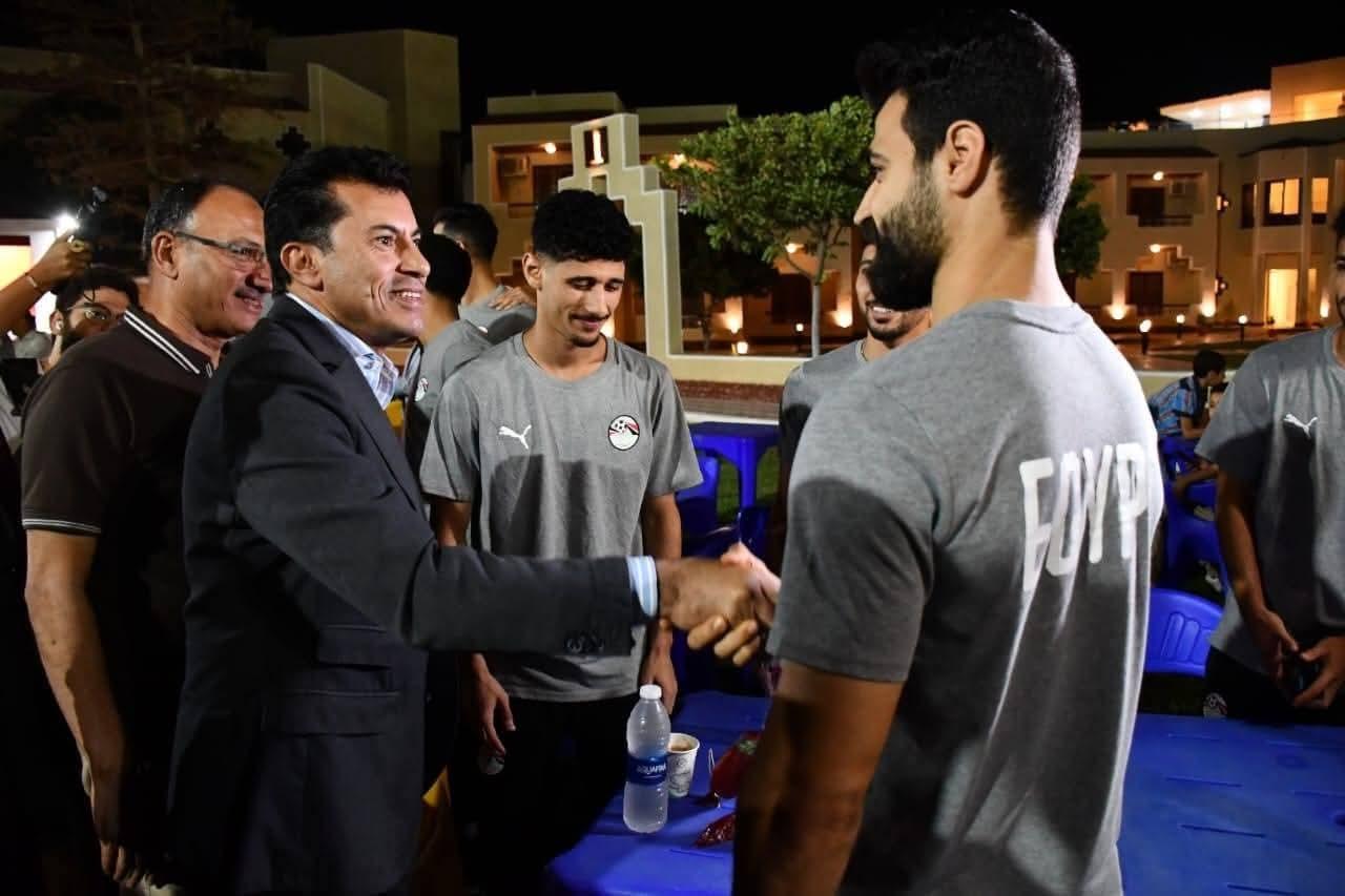 وزير الرياضة ومحافظ الإسماعيلية يدعمان المنتخب المصري استعداداً لكأس العرب.