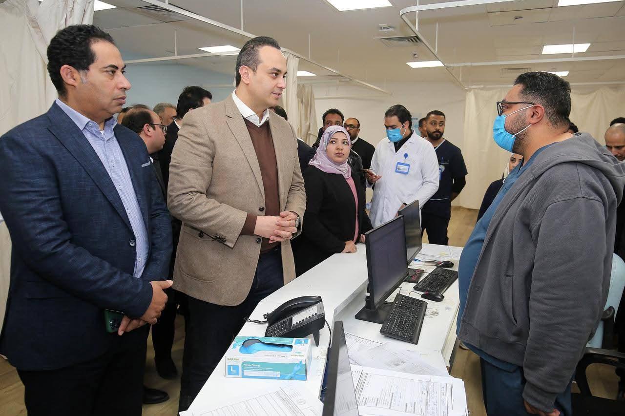 في ختام جولته الميدانية لمحافظة السويس ولمتابعة خطة تأمين الاحتفالات بأعياد رأس السنة.. - رئيس هيئة الرعاية الصحية يتفقد أقسام الطوارئ والرعاية الحرجة بمجمع السويس الطبي ويجتمع برؤساء الأقسام الإكلينيكية وقيادات المجمع