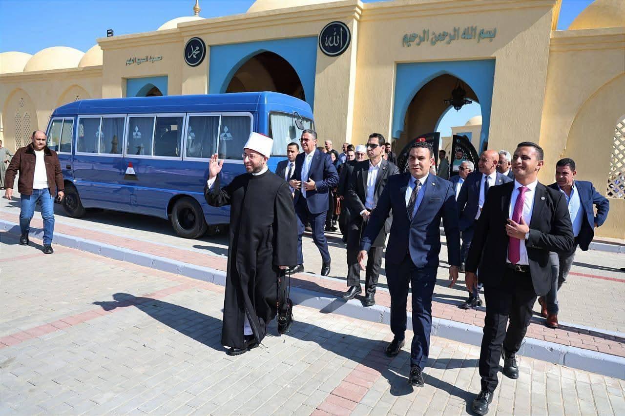 وزير الأوقاف: نحن هنا اليوم لتأكيد عناية الدولة المصرية بكل مواطنيها روحيًا وفكريًا وماديًا برعاية كريمة فخامة الرئيس عبد الفتاح السيسي – رئيس الجمهورية، واحتفالًا بالعيد القومي لمحافظة البحر الأحمر؛ افتتح الأستاذ الدكتور أسامة الأزهري - وزير الأوقاف، يرافقه الدكتور أشرف صبحي - وزير الشباب والرياضة، والسيد محمد جبران - وزير العمل، والدكتور شريف فاروق - وزير التموين والتجارة الداخلية، والأستاذ الدكتور محمد الضويني - وكيل الأزهر الشريف، والأستاذ أحمد المسلماني – رئيس الهيئة الوطنية للإعلام، والأستاذ الدكتور نظير عياد - مفتي الجمهورية، والدكتور أحمد عبد الرحمن – نائبًا عن وزيرة التضامن الاجتماعي، واللواء والسيد وليد عارف - رئيس الهيئة الهندسية للقوات المسلحة، والسيد اللواء أ.ح. أسامة سمير عبد اللطيف - قائد المنطقة الجنوبية العسكرية، اللواء عمرو حنفي - محافظ البحر الأحمر، والدكتور مهندس علاء ناجي أبو العلاء - رئيس الشركة القابضة للصناعات الغذائية، وعدد من القيادات الدعوية والتنفيذية، وممثلي قبائل حلايب وشلاتين وبرنيس وأبو رماد، مسجد "الحميد المجيد" بمدينة حلايب، ومسجد "السميع العليم" بمدينة برنيس جنوب مدينة مرسى علم. بدأ الافتتاح بمسجد "الحميد المجيد" بمدينة حلايب عبر تقنية الاتصال المرئي (فيديو كونفرانس) من مدينة برنيس، أعقبه افتتاح مسجد "السميع العليم" بمدينة برنيس، في أجواء إيمانية عكست اهتمام الدولة بعمارة بيوت الله ماديًا وروحيًا، لا سيما في المناطق والمدن الحدودية. وعقب الافتتاح، أدى الحضور صلاة الجمعة بمسجد "السميع العليم" بمدينة برنيس، وسط مشاركة واسعة من أهالي المنطقة، فقرأ قرآن الجمعة الشيخ حجاج الهنداوي، فيما ألقى الخطبة الشيخ حسام الدين محمود - إمام وخطيب مسجد الميناء الكبير بالغردقة، بعنوان: «قيمة الوقت في حياة الإنسان»، تناول فيها مكانة الوقت في الإسلام، وكونه جوهر الوجود ووعاء العمل والأمانة العظمى، التي أقسم الله تعالى بها في كتابه العزيز تعظيمًا لشأنها، مؤكدًا أن كل لحظة تمضي هي ميدان للعمل الصالح والقرب من الله سبحانه. وأكد وزير الأوقاف أن افتتاح المساجد يأتي في إطار توجيهات فخامة الرئيس عبد الفتاح السيسي – رئيس الجمهورية - بنشر الوعي الديني الرشيد، وترسيخ القيم الدينية والوطنية، وتعزيز دور المسجد في بناء الإنسان وخدمة المجتمع، مشددًا على اهتمام الدولة المصرية بكل أبنائها روحيًا وفكريًا وماديًا. وعقب صلاة الجمعة، شارك الوزراء والقيادات في توزيع عشرة آلاف كرتونة غذائية وكمية ضخمة من السلع والبطاطين وجّه رئيس الجمهورية بإهدائها من مختلف مؤسسات الدولة إلى أهالي المنطقة، دعمًا للأسر الأولى بالرعاية، وتأكيدًا لمبادئ التكافل الاجتماعي، وتخفيفًا للأعباء عن المواطنين.