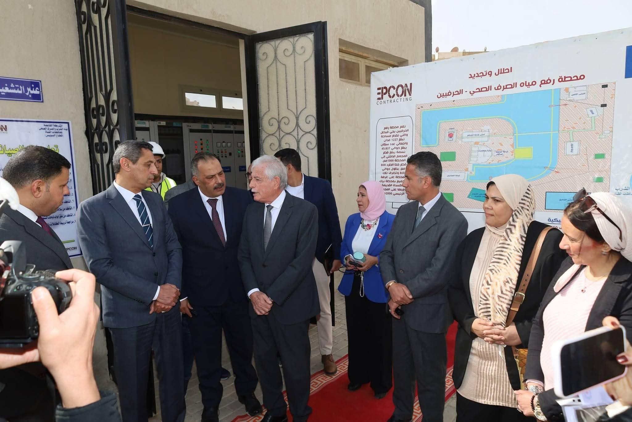 بدأت الجولة بتفقد محطة رفع صرف صحي الحرفيين بحي فيصل حيث استمع سيادته إلى شرح من المهندس المهندس أحمد رمضان رئيس الشركة القابضة لمياه الشرب والصرف الصحى لمحافظات القناة حول تطورات أعمال شبكة الصرف الصحي ورفع كفاءتها علي مستوي عدد من المحطات بالسويس.