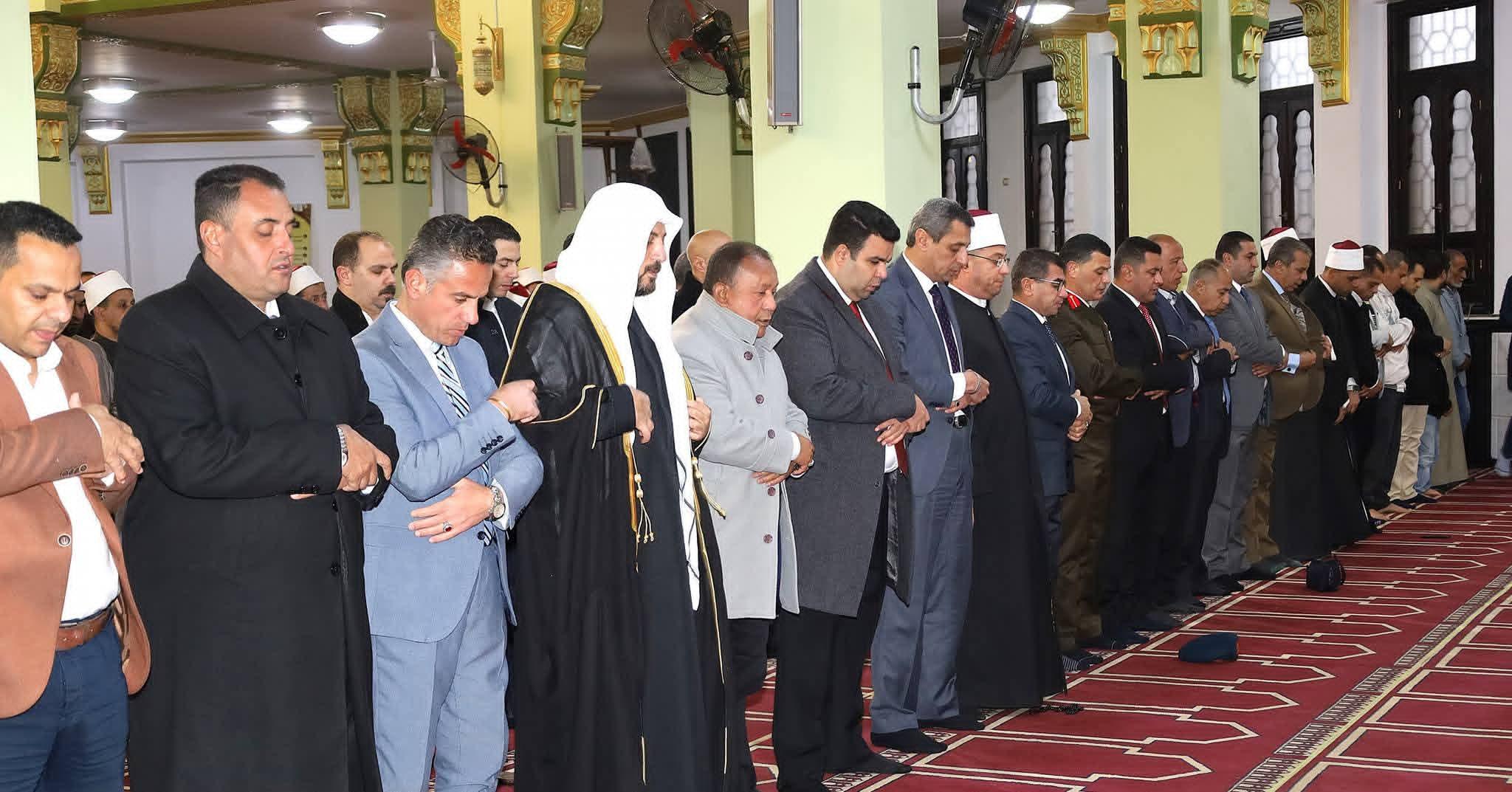 وأدي المحافظ والقيادات والأهالي صلاة المغرب ، أعقبها تبادل التهاني مع أهالي السويس بمناسبة هذه الذكرى الطيبة.