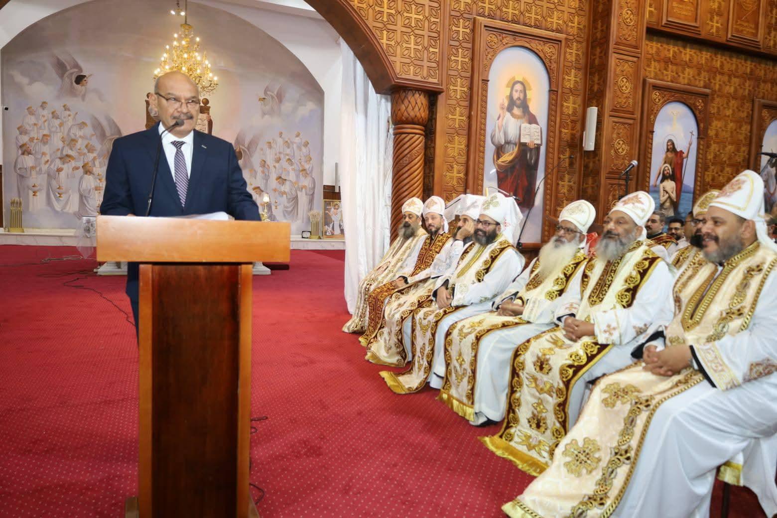 محافظ السويس وقائد الجيش الثالث الميداني ومدير الأمن والنواب وأهالي السويس يقدمون التهنئة للأخوة الأقباط بمناسبة عيد القيامة المجيد.