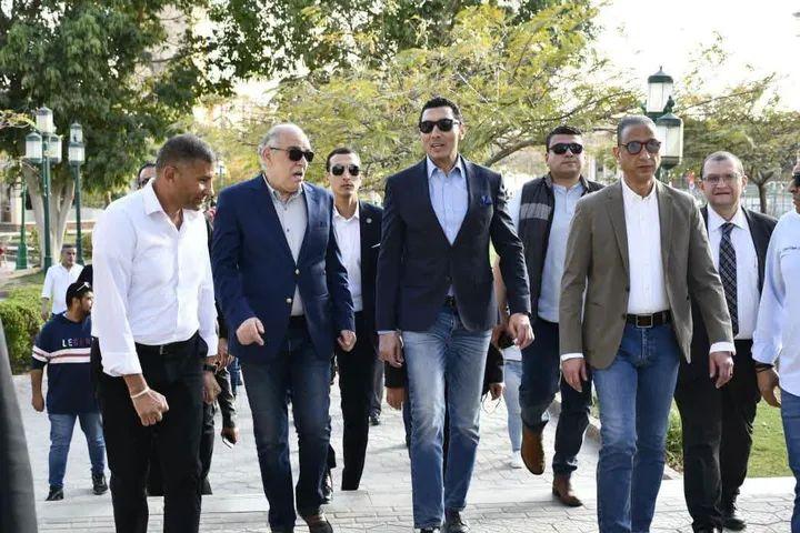 وزير الشباب والرياضة ومحافظ الجيزة يتفقدان أعمال التطوير بنادي الصيد بأكتوبر.