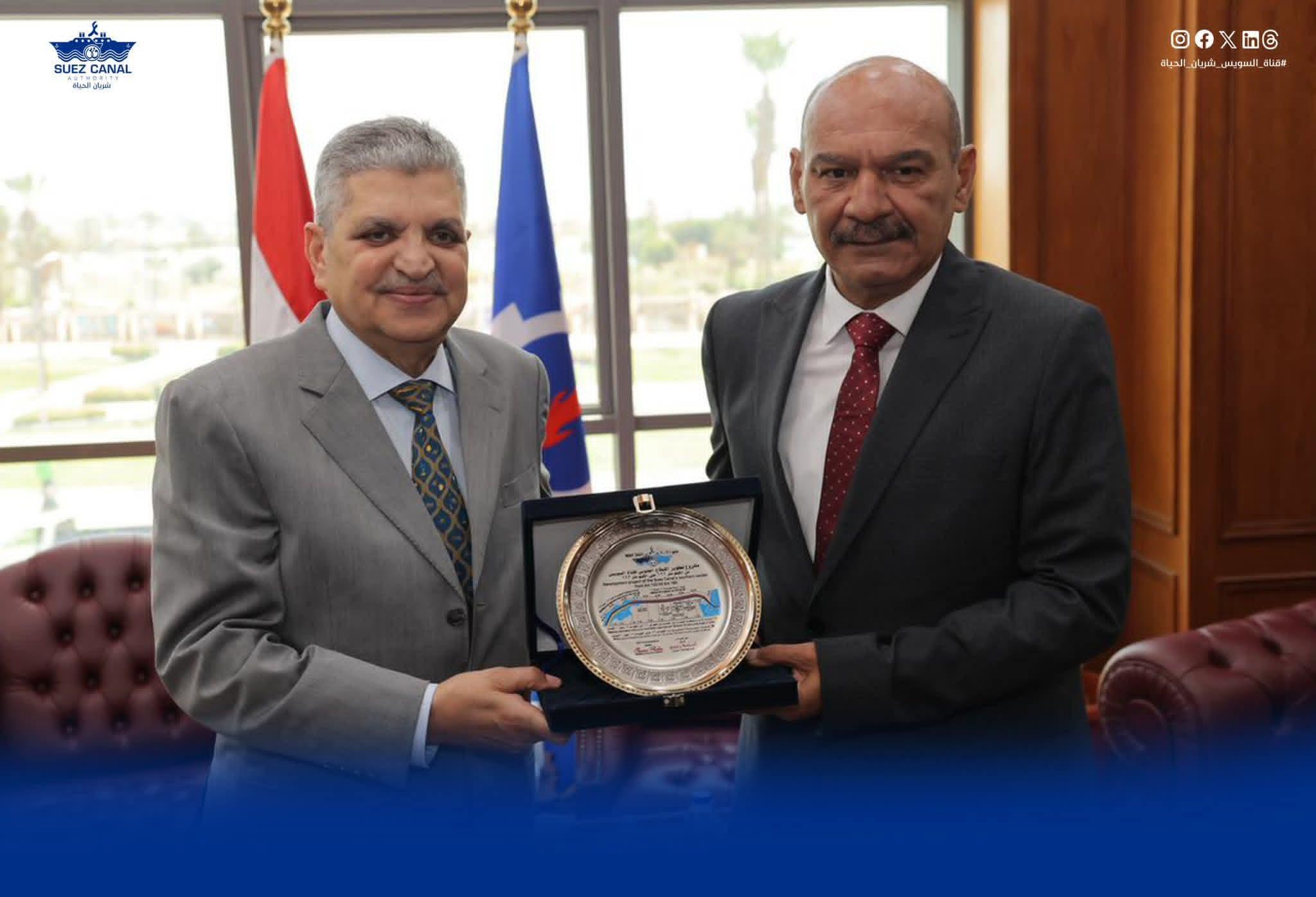 خلال جولته التفقدية بعدد من مواقع الهيئة بالسويس الفريق أسامة ربيع يبحث سبل التعاون مع محافظ السويس... ويتابع مستوى تقديم الرعاية الصحية بالمستشفيات والمراكز الطبية التابعة للهيئة تطوير الأرصفة البحرية ببورتوفيق لاستيعاب القاطرات الجديدة بأسطول الهيئة التقى الفريق أسامة ربيع رئيس هيئة قناة السويس، واللواء أركان حرب هاني رشاد محافظ السويس، لبحث سبل التعاون المشترك، بحضور الفريق أشرف عطوة نائب رئيس الهيئة، والدكتور محمد علام نائب المحافظ، وعدد من قيادات الهيئة والمحافظة، وذلك بمقر ديوان محافظة السويس. في مستهل اللقاء، أكد الفريق أسامة ربيع حرص الهيئة على تعزيز دورها المجتمعي بمنطقة القناة وسيناء والمُساهمة الفعالة في دعم جهود التنمية المستدامة والتي تتطلب تضافر جهود كافة مؤسسات الدولة والعمل المشترك. وأوضح رئيس الهيئة أن قناة السويس تولي اهتماماً كبيراً بتوطين الصناعات البحرية و توفير فرص عمل للشباب، علاوة على تفعيل المساهمات المجتمعية في عدد من القطاعات الخدمية لاسيما قطاع الرعاية الصحية. من جانبه، أكد اللواء هاني رشاد محافظ السويس أن الهيئة تظل شريكاَ رئيسياً في دعم جهود التنمية بمدن القناة، مُعرباً عن تطلعه أن تشهد المرحلة المُقبلة مزيداً من التعاون المثمر والبناء في مختلف المجالات لتحقيق الأهداف التنموية المنشودة وتلبية تطلعات المواطنين بالمحافظة. وأشار محافظ السويس إلى أن الخطط التنموية بالمحافظة تستهدف الارتقاء بالخدمات المُقدمة للمواطنين في كافة القطاعات، وتعظيم الاستفادة من قدراتها لتعزيز التنمية الصناعية وتشجيع السياحة. في ختام اللقاء، أهدى الفريق أسامة ربيع رئيس هيئة قناة السويس، درع الهيئة للسيد اللواء هاني رشاد محافظ السويس والذي أهداه في المقابل درع المحافظة. عقب ذلك تفقد الفريق أسامة ربيع رئيس هيئة قناة السويس، عدداً من مواقع العمل التابعة للهيئة بمحافظة السويس، لمتابعة سير العمل والوقوف على معدلات تنفيذ عدد من المشروعات التنموية والخدمية. بدأت الجولة بتفقد الفريق أسامة ربيع رئيس الهيئة شركة ترسانة السويس البحرية لمتابعة مستجدات نشاط الإصلاحات الخارجية بالشركة حيث تفقد أعمال الصيانة والإصلاح التي تتم على الحوض الجاف لثلاثة قاطرات منها القاطرة "أنصار20" التابعة لشركة البحر الأحمر السعودية و كلاً من القاطرتين "تحيا مصر 3" و"تحيا مصر 4" التابعتين لهيئة موانئ البحر الأحمر. كما استمع رئيس الهيئة إلى شرح تفصيلي عن عمليات الإصلاح التي تتم لعدد من الوحدات البحرية التابعة للهيئة على القزق الميكانيكي، وتابع مستجدات عملية الصيانة والإصلاح التي تتم للوحدة ماراديف 229 التابعة لشركة ماراديف للخدمات البترولية حيث تتم أعمال العمرة الكاملة لها بجانب الحوض العائم 55 ألف طن. وشاهد رئيس الهيئة اصطفاف الوحدات الأرضية التابعة للشركة والتي نجحت الشركة في تطويرها وإعادة تأهيلها ورفع كفائتها بالإمكانيات الذاتية. وتعرف الفريق ربيع على تطورات أعمال تطوير الحوض العائم ورفع كفائته ضمن خطة تطوير الشركة وتعظيم الاستفاده من قدراتها التشغيلية، وذلك بالتوازي مع سعي الشركة إلى الشراكة مع شركات القطاع الخاص لتنفيذ بعض المشروعات ذات التقنيات التخصصية مثل مشروعات توليد وإداره الطاقة المتجددة. وفي ختام جولته بالشركة، حرص الفريق أسامة ربيع رئيس الهيئة على التواصل مع عمال ومهندسي الشركة وحثهم على مواصلة العمل الجاد والمستمر واستكمال خطط تطوير الشركة والحفاظ على أصولها وترشيد استهلاك الطاقة في العمليات غير الإنتاجية. عقب ذلك، توجه الفريق أسامة ربيع لمتابعة مستجدات الأعمال الإنشائية الجارية لتطوير الأرصفة البحرية بقسم تحركات بورتوفيق حيث تجري أعمال التطوير لزيادة عمق الأرصفة إلى 9 أمتار بطول 325 متراً، وذلك من خلال شركة ترسانة السويس البحرية المقاول الرئيسي للمشروع وتنفيذ شركة الغرابلي للأعمال الهندسية المتكاملة وذلك تحت إشراف الإدارة الهندسية 